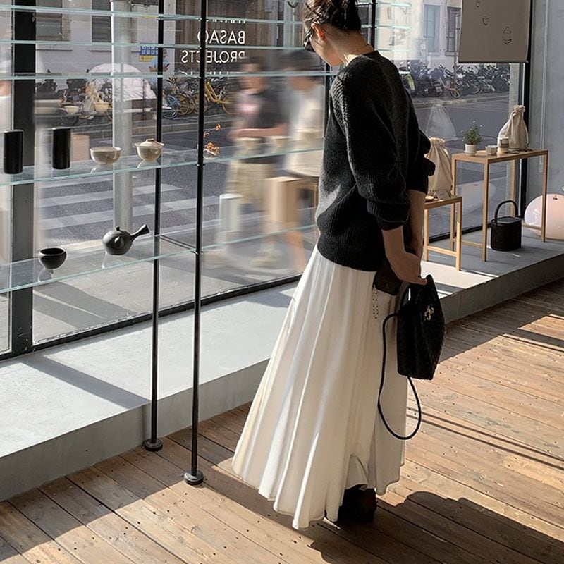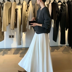 ・High waist white flared long skirt TH3129