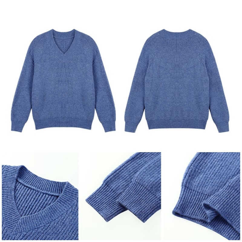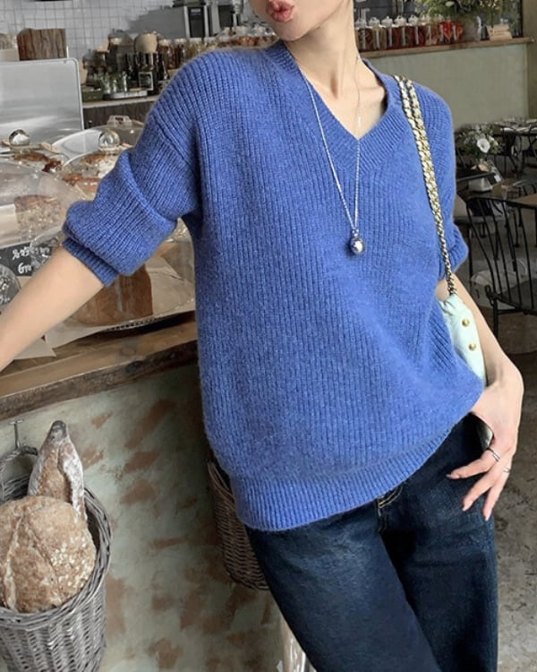 V-neck mid-gauge ribbed knit ◇4color TH3130