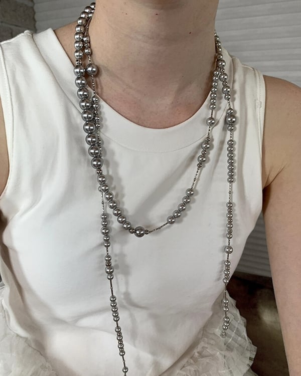 ランダムな配置とサイズが目を惹くロングビーズネックレス。